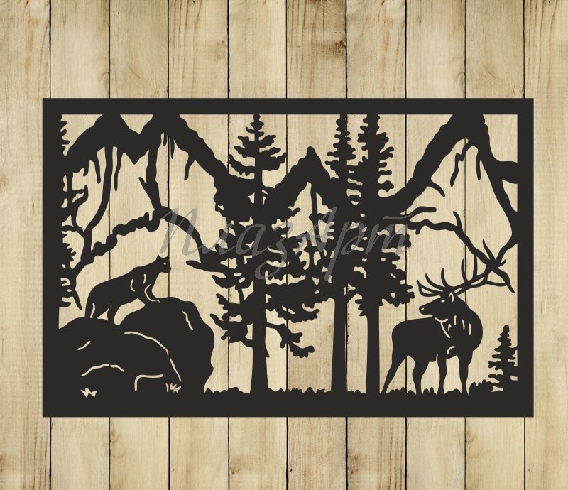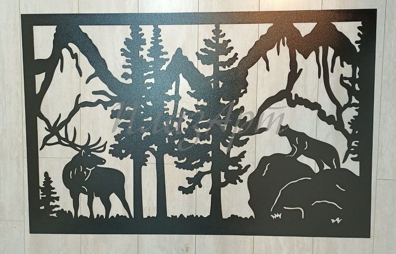 Панель из металла "Олень и пантера"